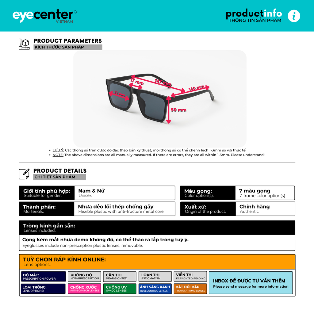 • Gọng có kèm tròng mica thường 0 độ. Có thể đeo thời trang chống bụi, hoặc ráp mắt độ cận thị, loạn thị, viễn thị, cận râm (cận màu), 0 độ các loại: Đổi màu, Chống Ánh Sáng Xanh, Chống UV400, Tráng cứng giảm xước... tùy ý.