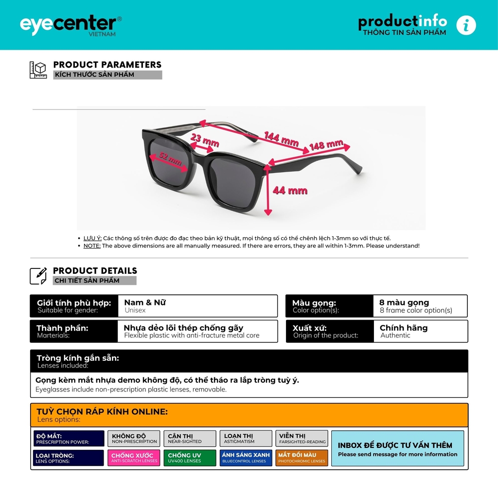 • Gọng có kèm tròng mica thường 0 độ. Có thể đeo thời trang chống bụi, hoặc ráp mắt độ cận thị, loạn thị, viễn thị, cận râm (cận màu), 0 độ các loại: Đổi màu, Chống Ánh Sáng Xanh, Chống UV400, Tráng cứng giảm xước... tùy ý.